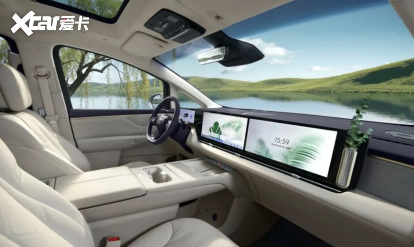 拉开侧滑门,至境世家纯电版的内饰将“科技豪华”演绎得淋漓尽致。新车最大的亮点在数字座舱生态。
