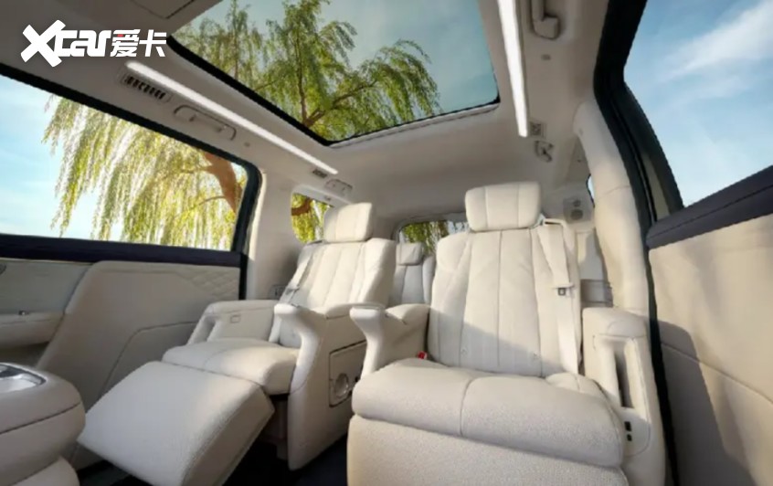 屏幕之外,材质的豪华感同样令人印象深刻。采用了“多姿态零重力座椅”,支持自适应空间调节。除了宽大的电动腿托,还创新提供了“云感贵妃榻”模式,可以一键变换出极其舒展的休息姿态。座椅皮革通过OEKO-TEX婴儿级认证,配合行业首创的"五恒"大健康座舱(恒温、恒湿、恒氧、恒洁、恒静),为家人营造顶级的呼吸与休憩环境。