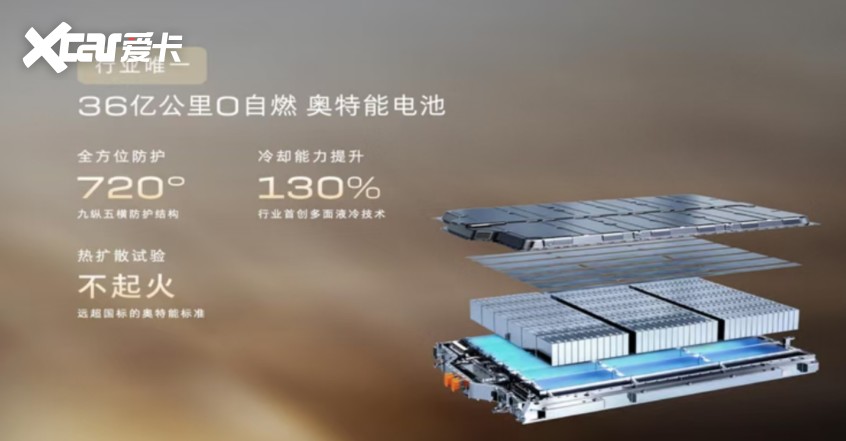 安全性方面,新车搭载行业唯一实现36亿公里行驶0自燃的奥特能电池,采用9纵5横的电池包防护结构,搭配行业首创的多面液冷技术,电池包完成全维度验证,极端工况下仍能做到热失控不起火不扩散。